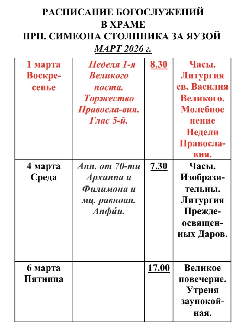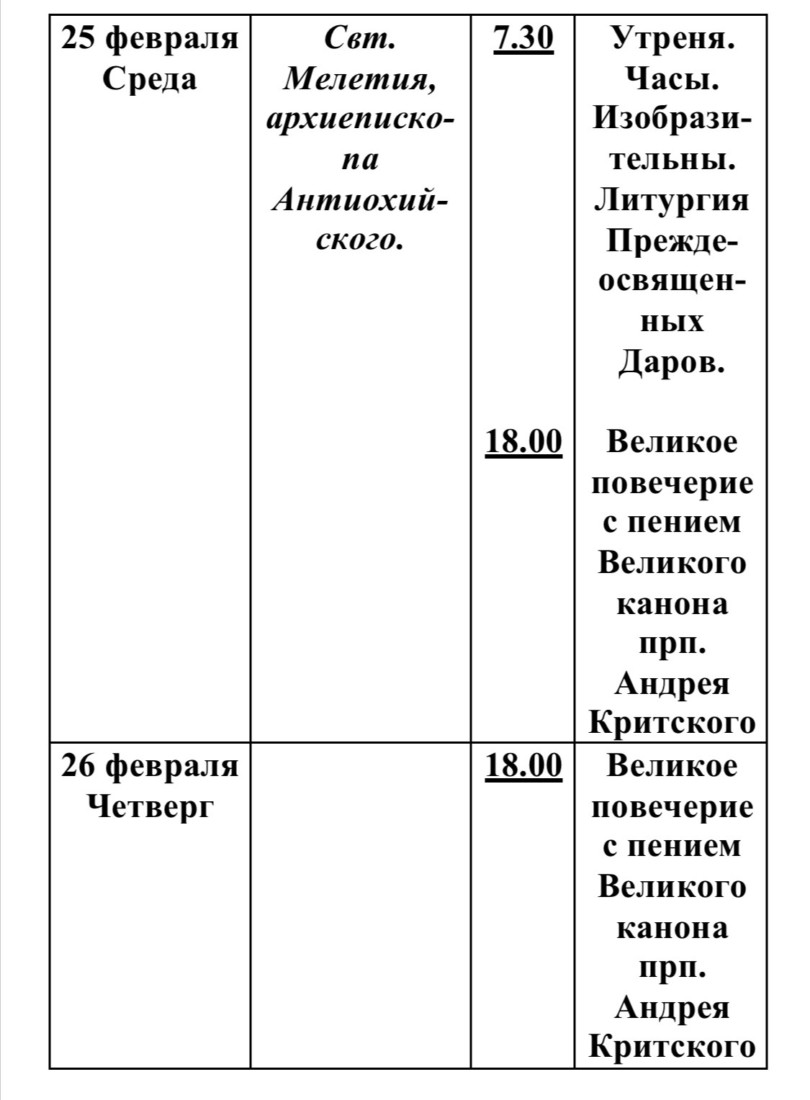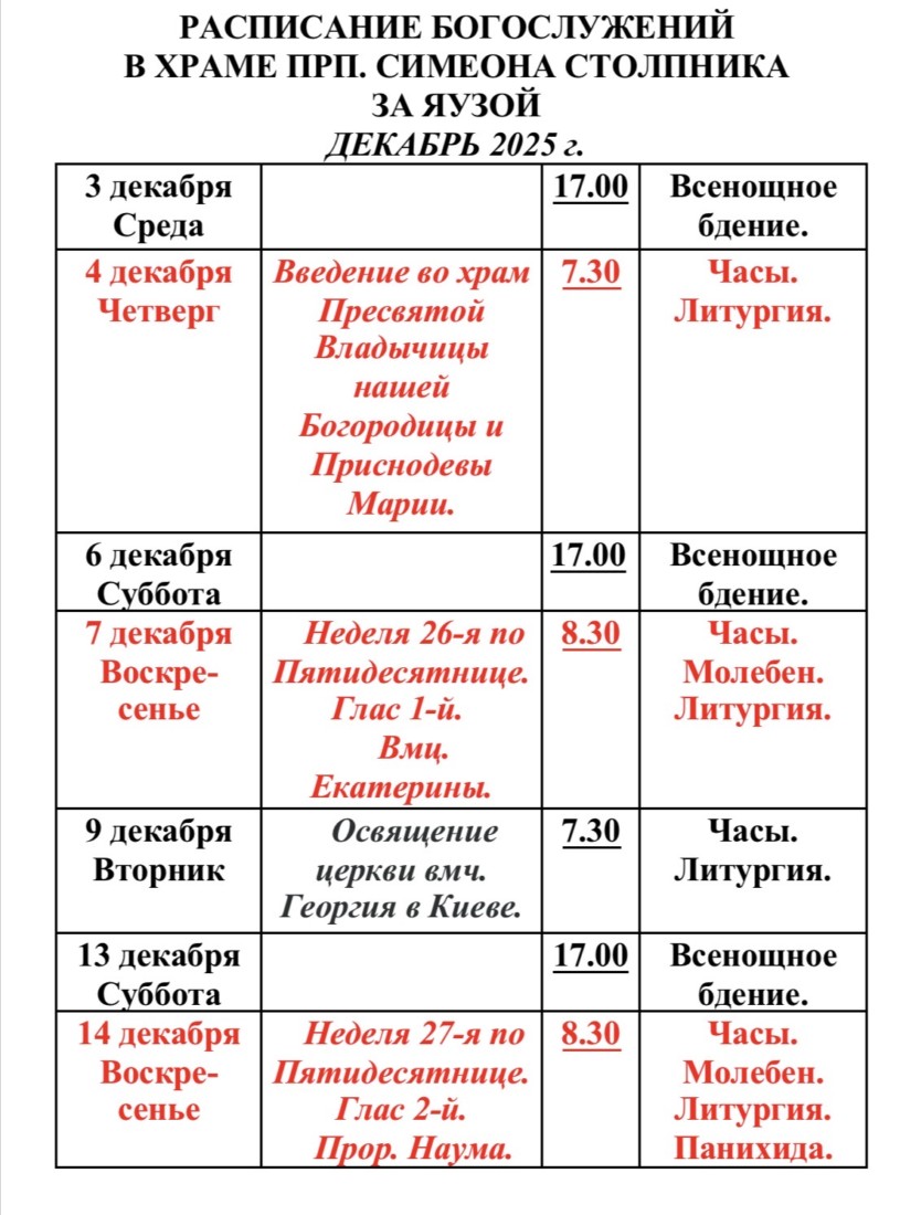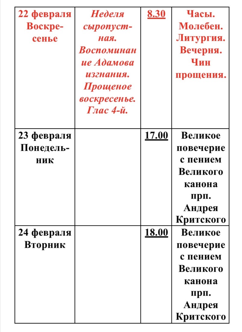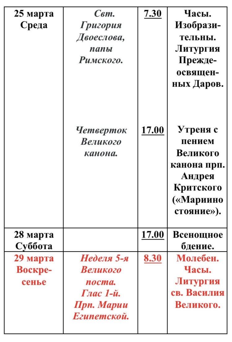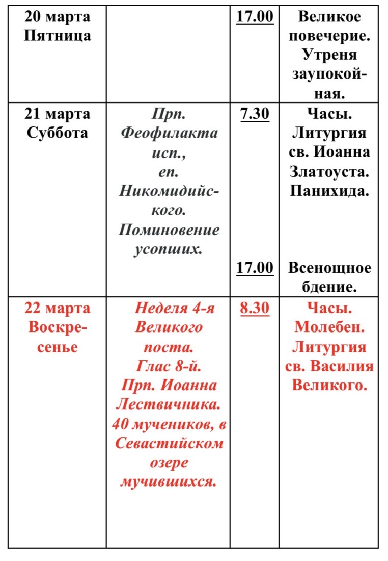 Расписание богослужений