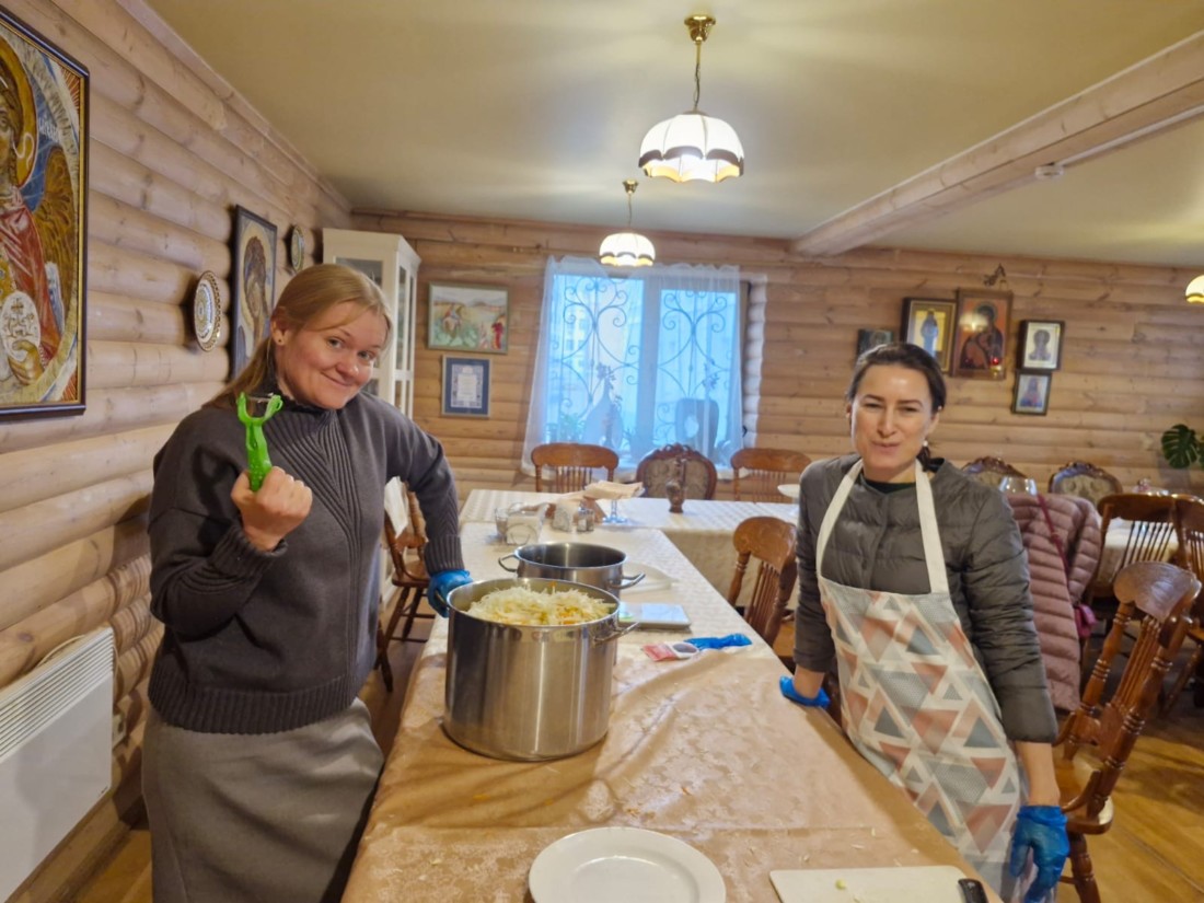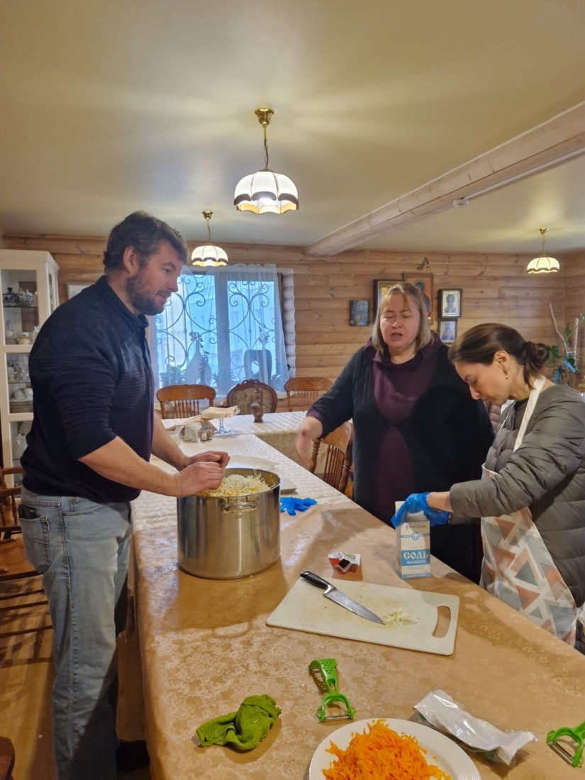 Самые активные прихожане учились готовить главное блюдо осени — квашенную капусту. Проводили мастер-класс опытные хозяйки Ольга и Татьяна. Они делились со всеми тонкостями правильного приготовления квашенной капусты. Мероприятие это оказалось «интерактивным», участвовали абсолютно все. Одни чистили и терли морковку, другие шинковали капусту, кому-то пришлось капусту мять. В дружном коллективе дело шло быстро и теперь все с нетерпением ждут, когда можно будет попробовать «свою» квашенную капустку!
